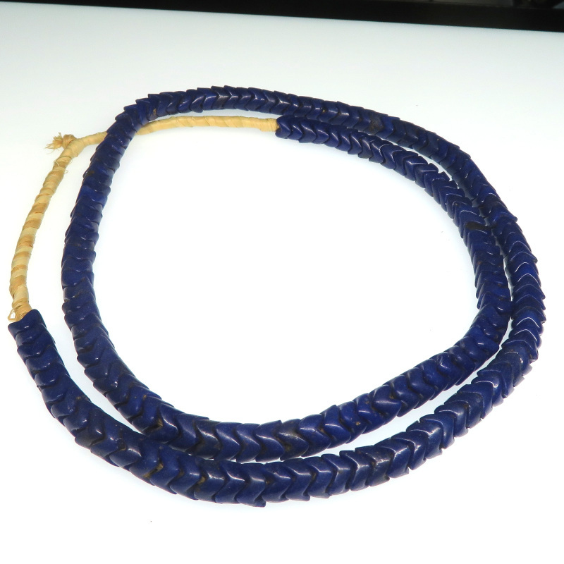 | 説明 | ボヘミア製アフリカ渡り。 スネークビーズです。 色はネイビー。紺色です。 角が滑らかで背の低いタイプ。 ビーズがうまくジョイントして一本の蛇の脊椎のように見えます。 |
