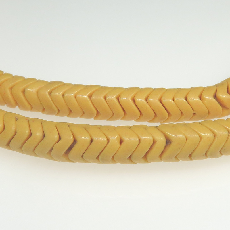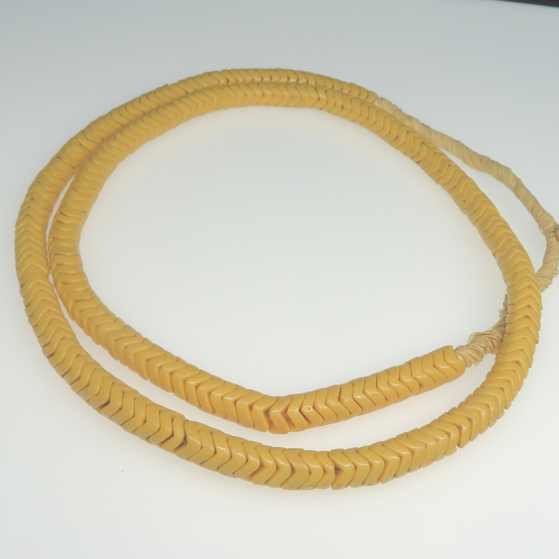 | 説明 | ボヘミア製アフリカ渡り。 スネークビーズです。 色はやさしい色調の山吹色です。 角が滑らかで背の低いタイプ。 ビーズがうまくジョイントして一本の蛇の脊椎のように見えます。 |