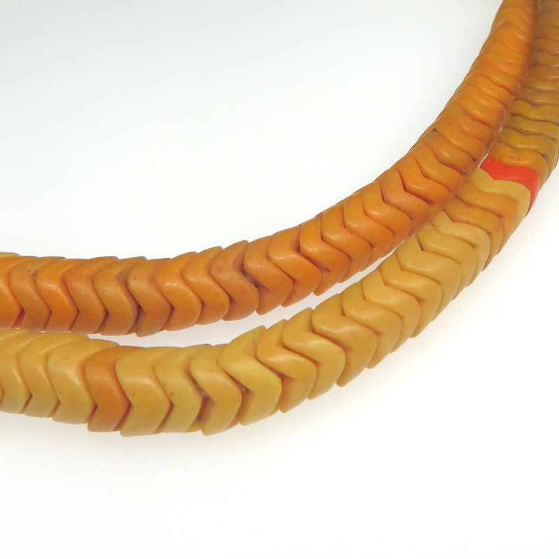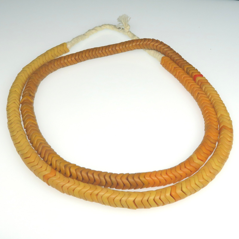 | 説明 | ボヘミア製アフリカ渡り。 スネークビーズです。山吹色周辺の色のミックス。微妙な色の変化がなんとも魅力的です。 角が滑らかで背の低いタイプ。 ビーズがうまくジョイントして一本の蛇の脊椎のように見えます。 |