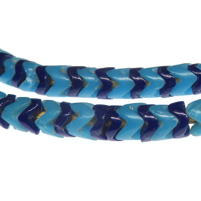 | 説明 | ボヘミア製アフリカ渡り。 スネークビーズです。ブルーとネイビーのミックス連。 ネイビーの方は角が滑らかで背の低いタイプです。 |