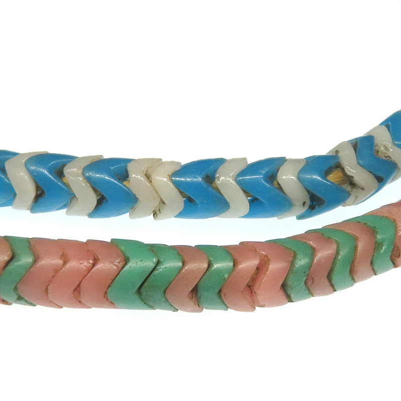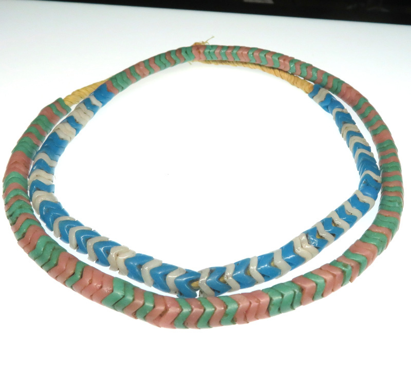 | 説明 | ボヘミア製アフリカ渡り。 スネークビーズです。希少な白が入っています。4種類の色のミックス連。 形も2種類。角が滑らかで背の低いタイプと、背が高く少しとがったタイプが混じっています。 そして、チューブ型が2個入っています。 |