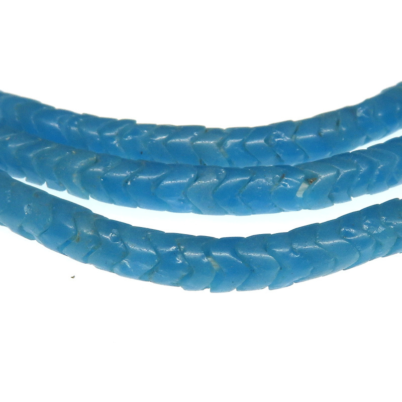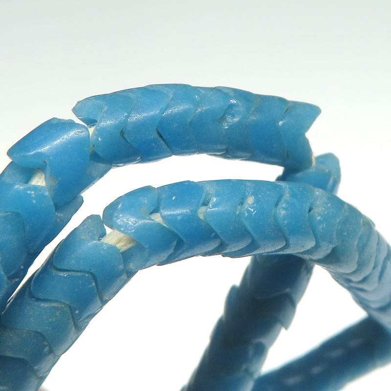 | 説明 | ボヘミア製アフリカ渡り。 ブルーのスネークビーズ。 ビーズがうまくジョイントして一本の蛇の脊椎のように見えます。 非常に珍しいサイズの細連です。 |