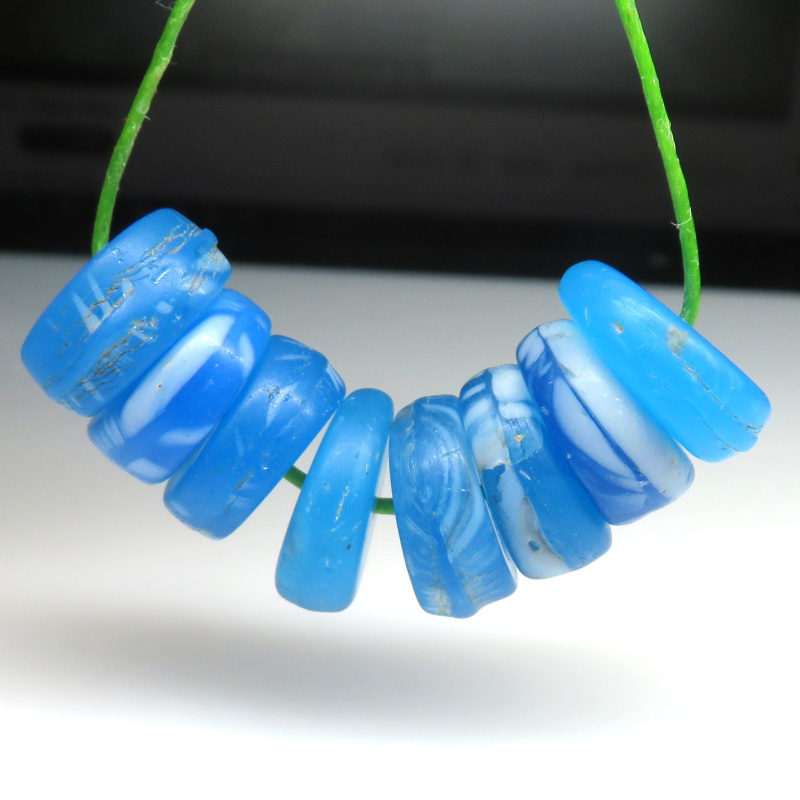 | 説明 | ボヘミア製アフリカ渡り。 西アフリカでカカンバと呼ばれ、人々に親しまれているビーズです。 少し上下が斜めにカットされたような形をしています。 一つ一つがとても可愛いです。 形はほぼ同じですが、色の出方はそれぞれ違います。 美しいブルーのマーブルビーズ8個セットです。 通常より一回り大きいサイズ。 それぞれ色合いには個性があります。 |