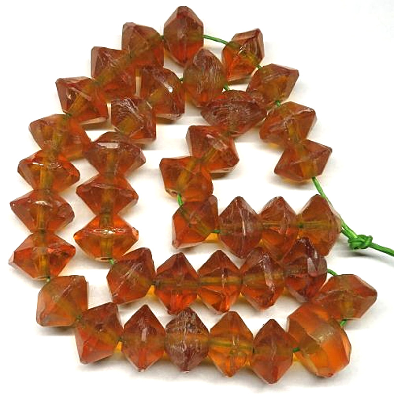 | 説明 | ボヘミア製。 そろばん玉のビーズです。38個セット。 珍しい琥珀色のクリア。 華やかでで高級感があります。 中央のところにある一個は、大変珍しい形をしています。 |