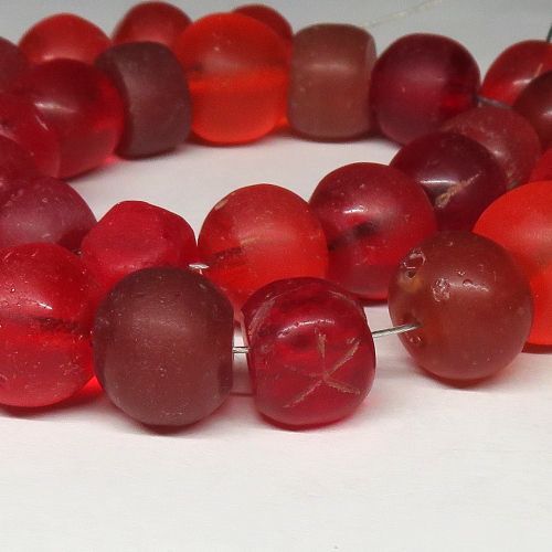 | 説明 | ボヘミア製。 レッド〜オレンジクリア短連です。 それぞれ色やサイズ・形に個性があります。 ひとつ、珍しい形と文様の入った型ガラスビーズが入っています。 |