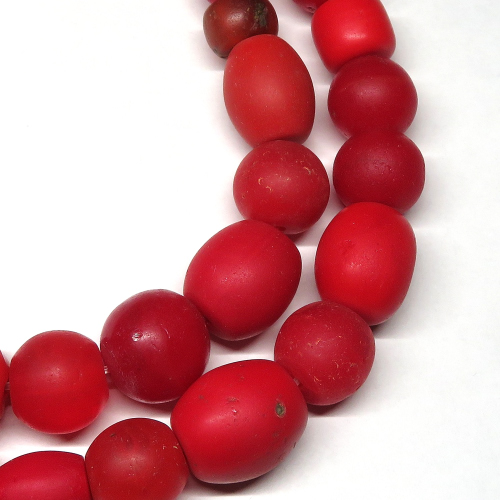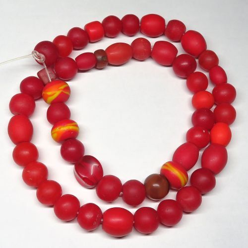 | 説明 | ボヘミア製。 いろんなレッドのミックス連です。 丸玉、棗型、キューブ、マーブル。 古いカーネリアンと瑪瑙が一粒ずつ混じっています。 それぞれ色やサイズ・形に個性があります。 |