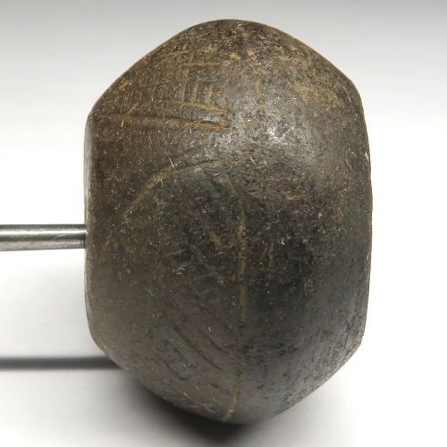 | 説明 | 紡錘車とは糸を紡ぐ時に使うはずみ車です。 日本でも古墳時代の遺跡からこのような絵や文字の刻まれた紡錘車が数多く発掘されています。 ドゴン族はこれを神様へ捧げるネックレスとして家の入り口にジャコウネコの死体と共に吊るして豊作を祈ったと言われています。 陶製。彫り込まれた文様にどんな意味があるのでしょうか。 |