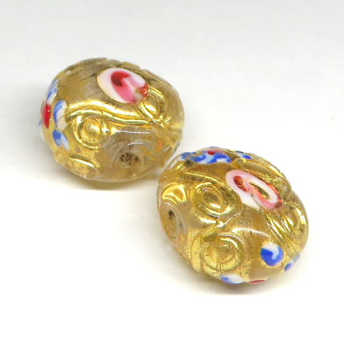 | 説明 | ヴェネチア製。 美しいヴィンテージガラスビーズです。 金箔が施されたトレイルデコレーション。