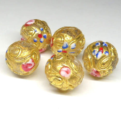 | 説明 | ヴェネチア製。 美しいヴィンテージガラスビーズです。 金箔が施されたトレイルデコレーション。