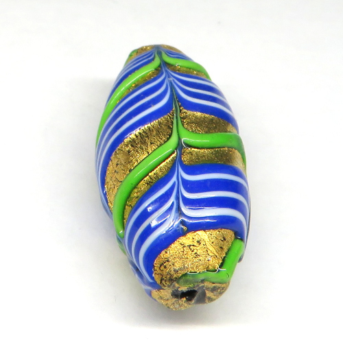 | 説明 | ヴェネチア製。 美しいヴィンテージガラスビーズです。 金箔に、バーナーワークで施したラインを掻き揚げるという大変凝った技法を使ったフェザービーズ。