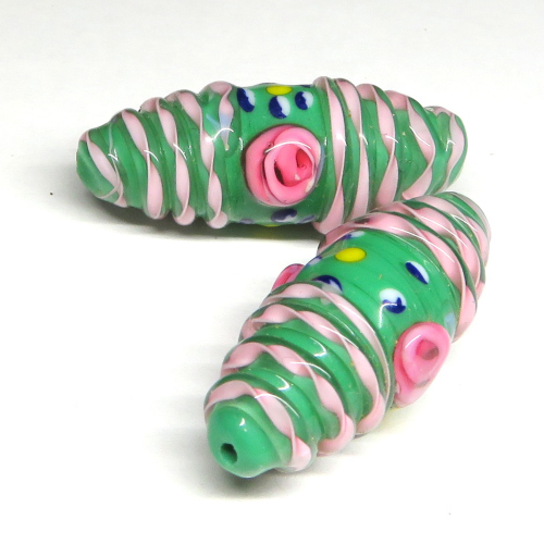 | 説明 | ヴェネチア製。 美しいヴィンテージガラスビーズです。 技巧を凝らしたレースのラインと、愛らしい薔薇と忘れな草をバーナーワークで丁寧に描いています。