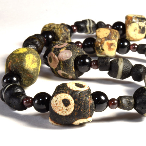 | 説明 | 10世紀前後の古代アイビーズとイスラム玉のネックレスです。 つなぎには天然石を使いました。オニキスとガーネット。 かせた感じの黒いビーズは、10世紀前後のインドパシフィックビーズです。 根元のビーズは純度の高いカレンシルバー。留め具は合金のカニカンです。 装飾品としてはもちろん、古代美術品のコレクションとしてもお勧めです。 |