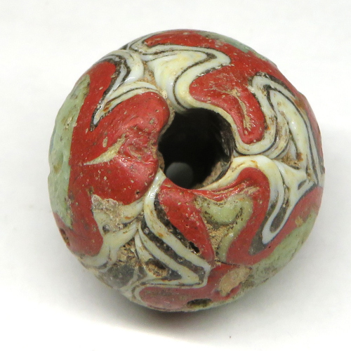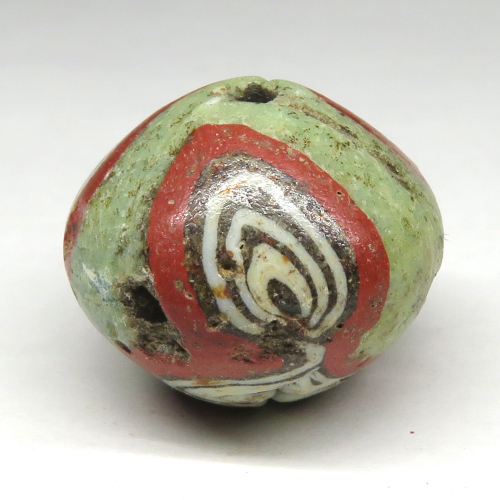 | 説明 | イスラム期のガラスビーズ。 モザイク折込玉の大玉です。 その製作手法がよくわかる、とても興味深い玉です。 古の職人の手の跡が感じられます。不思議な魅力を湛えた玉。 |