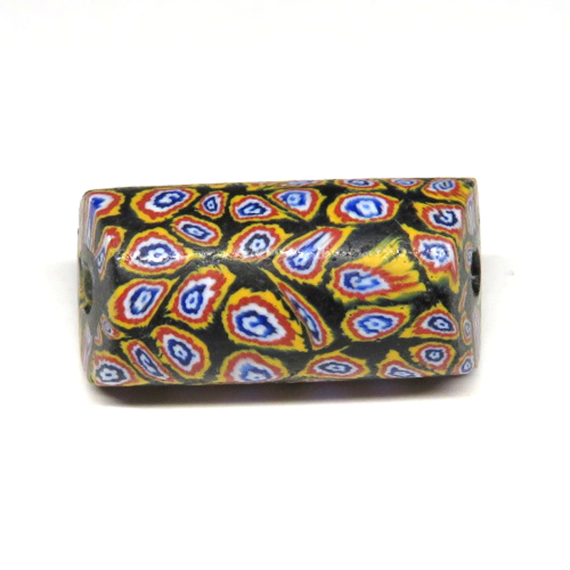 | 説明 | ヴェネチア製アフリカ渡り。 中型のミルフィオリです。 composite=合成法によるムッリーネを使ったミルフィオリ。 (詳しくは、「旅するとんぼ玉 p.34) |