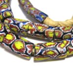 | 説明 | ヴェネチア製アフリカ渡り。 中型のミルフィオリ連です。 2種類のもののミックスです。 内、半分以上はcomposite=合成法によるムッリーネを使ったミルフィオリ。 (詳しくは、「旅するとんぼ玉 p.34)42個。 |