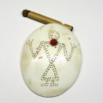 | 説明 | ナガ族の独創的な貝で作った耳飾り。伝世品。 ユニークな人の文様が彫り込まれています。 |