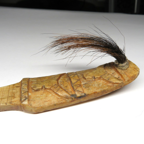 | 説明 | ナガ族の骨で作った簪(かんざし)。伝世品。 ユニークな文様が彫り込まれています。 |