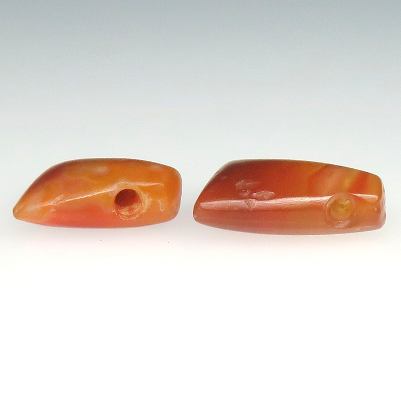| 説明 | 西アフリカの発掘のカーネリアンです。 珍しいペンダントトップ型。2個セット。 両方から穿孔する方法で穴が開けられているので、穴の入り口が広く真ん中の方が小さくなっています。 この形で、うまく穿孔したものだとため息が出ます。 左右からのトンネルが少しずれていて、まっすぐに通らない場合もあります。 ひとつはまっすぐに通っていますが、ひとつは少しずれています。 ずれているほうは、ワイヤーなど柔軟性のある細いものを通すほうが良いと思います。 |