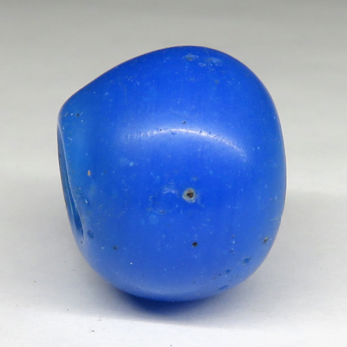 | 説明 | オランダ製。 アフリカに渡った神秘的な青玉です。 日本では、浅葱玉の表面に、制作する時の気泡が穴となって所々残ったものを一名「虫の巣玉」と呼ぶ。 松前藩が綱吉公に献上した際に字義を解しかねて問題を引き起こした・・・。(杉山寿栄男「アイヌたま」参照)との記述もあります。 独特の存在感で、何かを語りかけてくるような…そんな玉です。 |