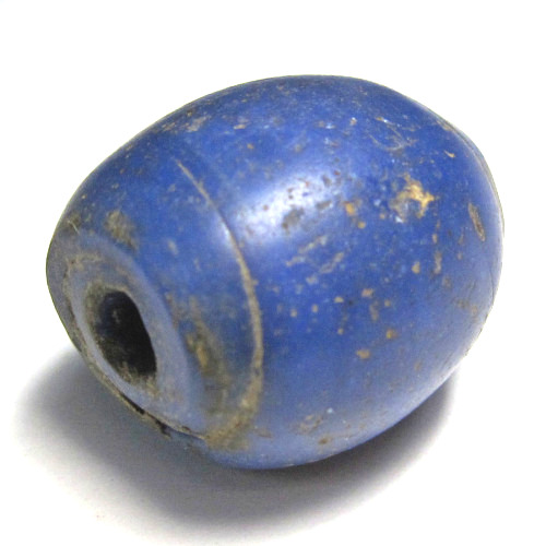 | 説明 | オランダ製。 アフリカに渡った青玉です。 珍しい大型の紡錘型。 日本では、浅葱玉の表面に、制作する時の気泡が穴となって所々残ったものを一名「虫の巣玉」と呼ぶ。 松前藩が綱吉公に献上した際に字義を解しかねて問題を引き起こした・・・。(杉山寿栄男「アイヌたま」参照)との記述もあります。 独特の存在感で、何かを語りかけてくるような。。そんな玉です。 |