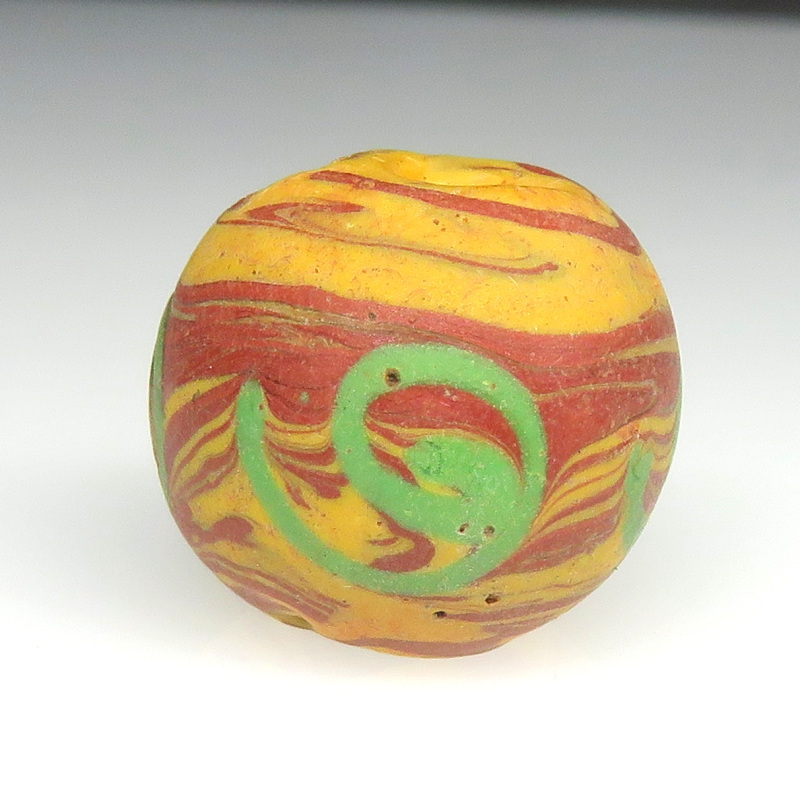 | 説明 | ヴェネチア製アフリカ渡り。 大変希少な山吹色と茶色のマーブルの美しいゼン(シックス)です。 形もきれいで黄緑色の渦巻きの目が4つ。 |