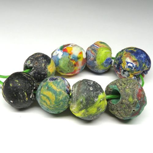 | 説明 | ガーナ製。 再生ガラスです。 1800年代後期〜1900年代初期のヴェネツィアンビーズを溶かしたり砕いたりして、再成形したものです。 混沌とした色の洪水の中に、独特の世界観が表出してくるようです。 ミルフィオリや筋玉などオリジナルの姿が見えて楽しい。 8個セットです。 |