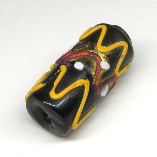 | 説明 | ヴェネチア製アフリカ渡り。 華やかなウェディングケーキ。 漆黒のボディーに山吹色のラインが印象的です。 この手の玉は、どうしてもモチーフの欠損が見られますが、比較的よく残っています。 |