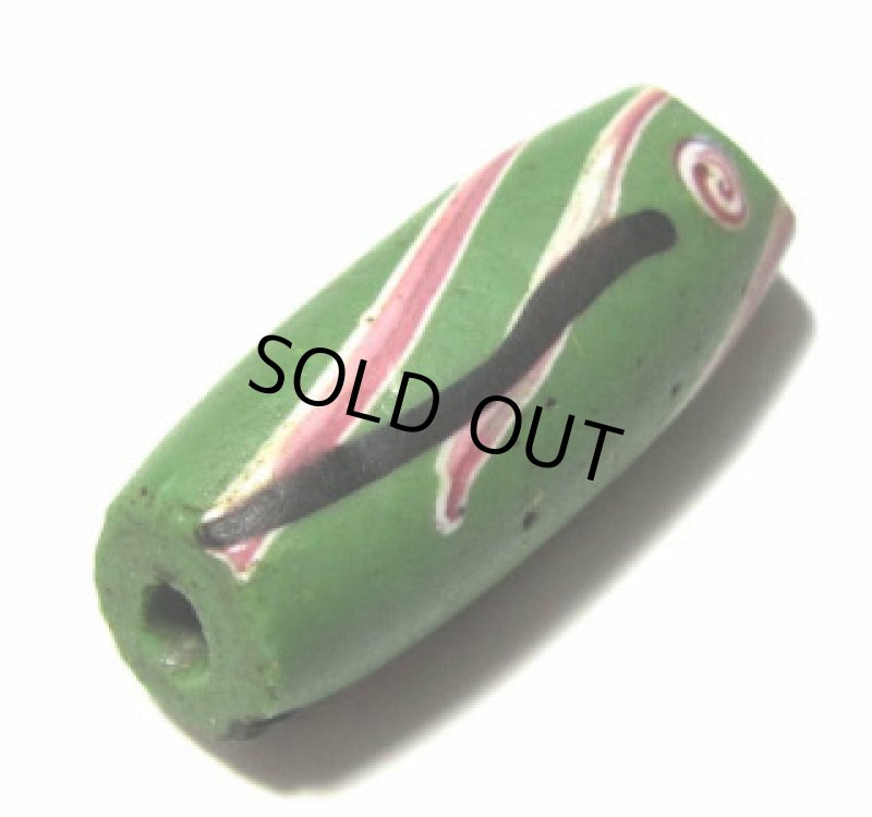 | 説明 | ヴェネチア製アフリカ渡り。 アフリカ製アコスのデザインを真似て作ったヴェネツィア製のファンシービーズです。 アフリカ製のものに比べて、すっきりと垢抜けた印象です。 これは、大変珍しい緑。ラインは、白に金赤のラインと黒。 |