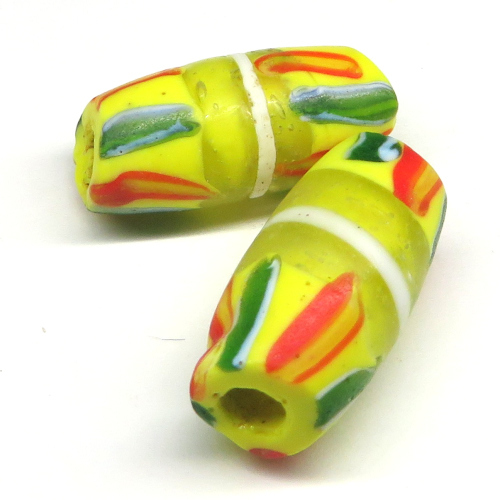 | 説明 | ヴェネチア製アフリカ渡り。 非常に珍しいヴェネツィア製のファンシービーズです。 真ん中に透明の部分があるという、大変独創的なスタイル。 両端を少し斜めにカットしたタイプです。 |