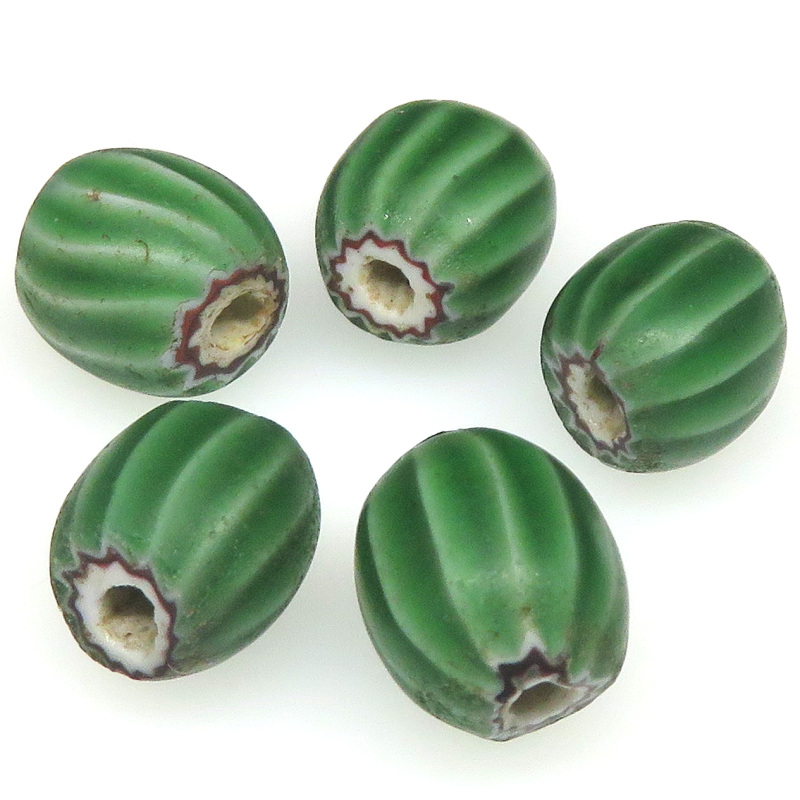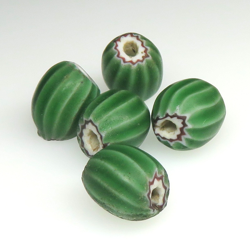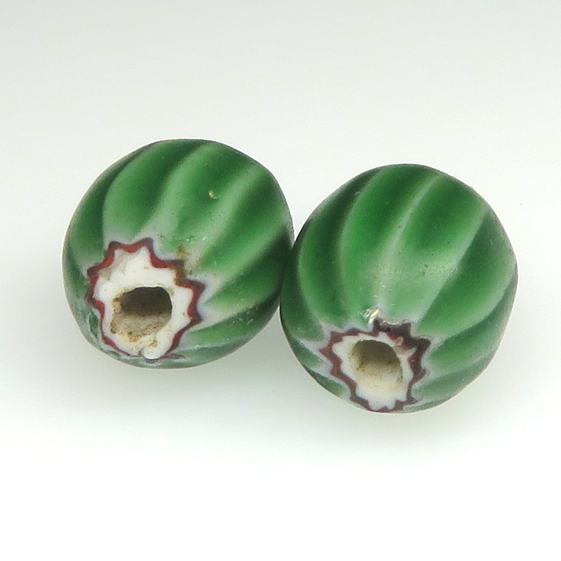 | 説明 | ヴェネチア製アフリカ渡り。 シェブロンタイプで特にウォーターメロンの愛称でも親しまれています。 珍しい球形。渋い緑です。 一つのお値段です。 |