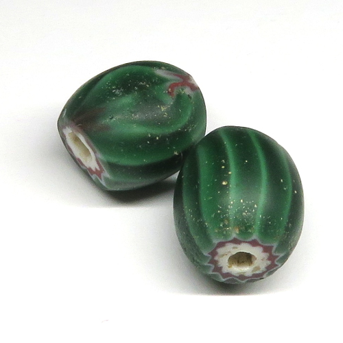 | 説明 | ヴェネチア製アフリカ渡り。 シェブロンタイプで特にウォーターメロンの愛称でも親しまれています。 レアな大型の球形2個セット。 |