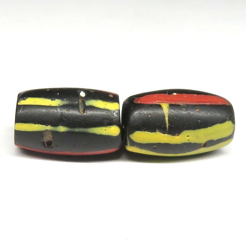 | 説明 | ヴェネチア製アフリカ渡り。 漆黒のボディーに力強いライン。 印象的な筋玉です。 二個セットです。 |