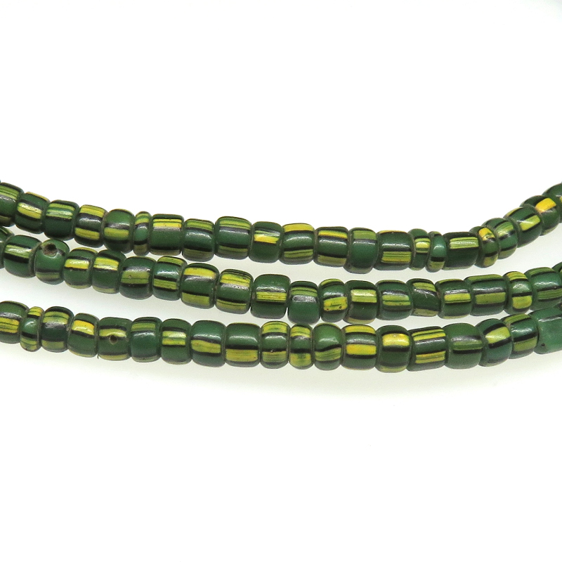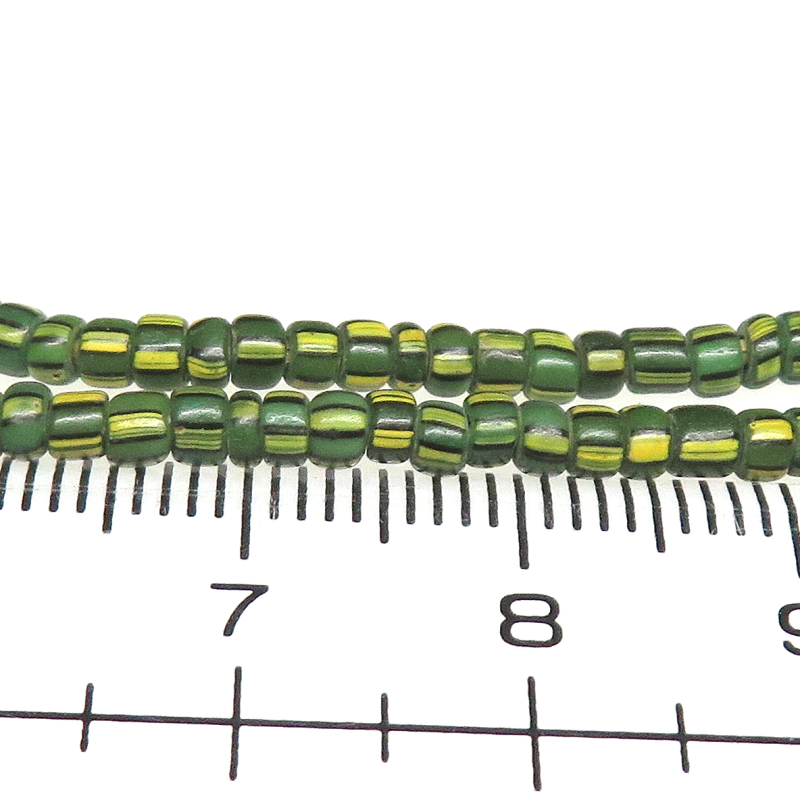 | 説明 | ヴェネチア製アフリカ渡り。 カンネッテ(小さな筋玉)。 非常に小さなカンネッテ。 一つ一つが美しい。見ていると気が遠くなりそうです。 深いグリーンに黄色と黒のライン。 |