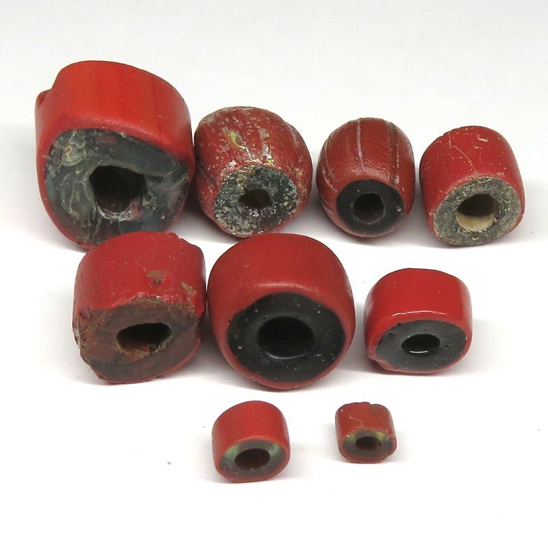 | 説明 | ヴェネチア製アフリカ渡り。 古いタイプのビーズ連です。 ラムネ色のガラスにテラコッタ様の赤茶のガラスをかぶせた素朴なビーズ。 いろんな形・サイズ・状態のもの9個セット。 粒は一粒一粒、色・サイズ・形に個性があります。 |