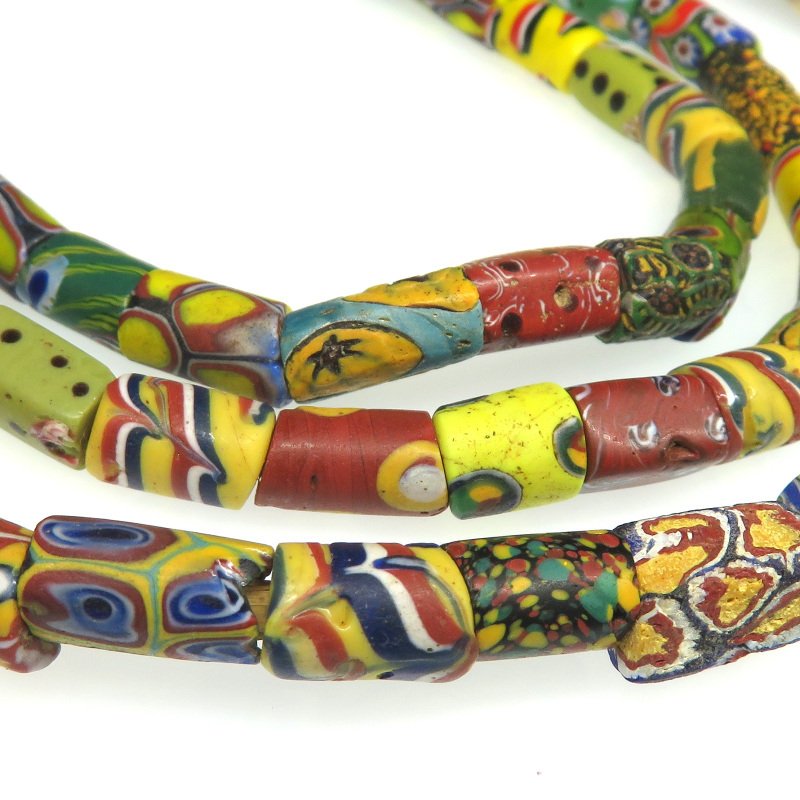 | 説明 | ヴェネチア製のアンティークビーズのミックス連です。 ミルフィオリ、ファンシー、アイビーズや筋玉・・・いろいろ入って、盛りだくさんの1連です。 どれも小粒でかわいらしい。 71個。 |