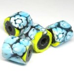 レアなタイプのミルフィオリ。 両端を少し斜めにカットしたものもあります。 4個セットです。 |