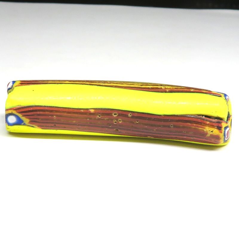 | 説明 | ヴェネチア製アフリカ渡り。 ミルフィオリエルボーです。 「肘(ひじ)」のように曲がっていることから、「エルボー」と呼ばれます。 通常の真っ直ぐの形のものと比べると圧倒的に数が少なく、状態の良いものは 更に希少です。 |