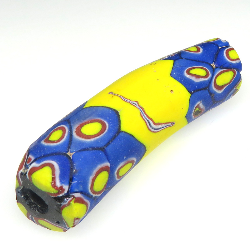 | 説明 | ヴェネチア製アフリカ渡り。 ミルフィオリエルボーです。 「肘(ひじ)」のように曲がっていることから、「エルボー」と呼ばれます。 通常の真っ直ぐの形のものと比べると圧倒的に数が少なく、状態の良いものは 更に希少です。 |