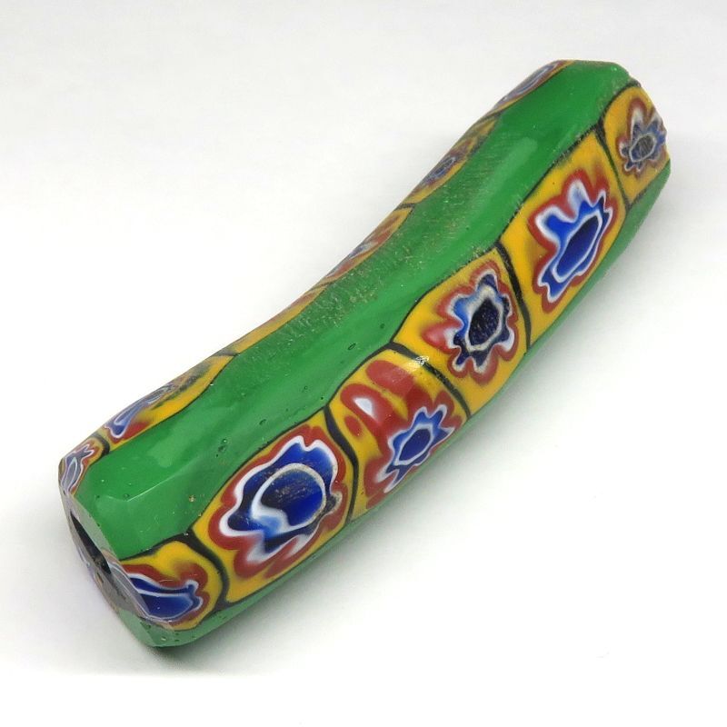| 説明 | ヴェネチア製アフリカ渡り。 ミルフィオリエルボーです。 「肘(ひじ)」のように曲がっていることから、「エルボー」と呼ばれます。 通常の真っ直ぐの形のものと比べると圧倒的に数が少なく、状態の良いものは 更に希少です。 |