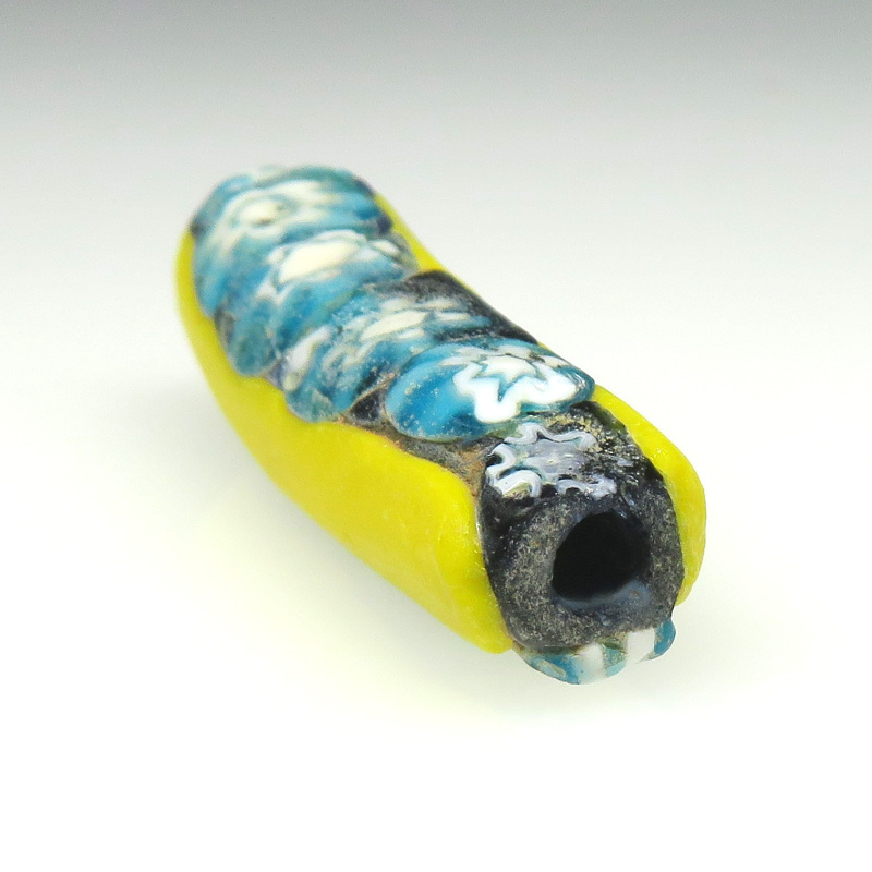 | 説明 | ヴェネチア製アフリカ渡り。 ミルフィオリエルボーです。 「肘(ひじ)」のように曲がっていることから、「エルボー」と呼ばれます。 通常の真っ直ぐの形のものと比べると圧倒的に数が少なく、状態の良いものは 更に希少です。 |