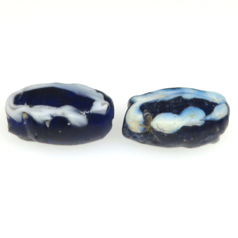 | 説明 | ヴェネチア製アフリカ渡り。 レアなヴェネチアンビーズ「アラベスク」。 深い瑠璃クリアに白が印象的です。 形の似たものを2個セットにしてみました。 |