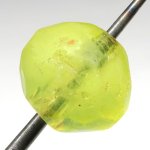 | 説明 | ボヘミア製。 ヴァセリンビーズと呼ばれるウランガラスの蜜柑玉です。 型で作ったビーズに、手業でカットを加えるという、ボヘミアンビーズ初期の技術が見られます。 ふっくらした形が愛らしく、高貴な輝きを湛える美玉。 表面が擦れてすりガラスのようになっていますが、これが玉に柔らかい印象を与えています。 |