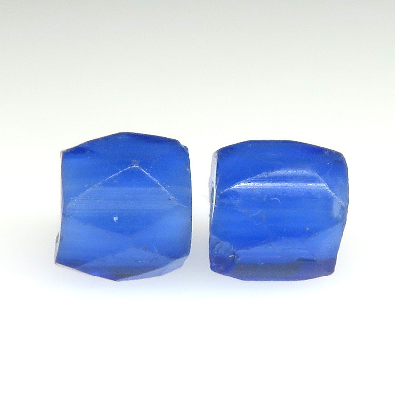 説明 | ボヘミア製。 エスキモーの愛した神秘的な青・・ロシアンブルーです。 代表的なボヘミアのカットビーズです。 層構造の外側はクリアで美しい輝きに満ちています。 サイズ、形の似たもの2個セット。 |