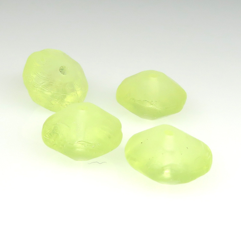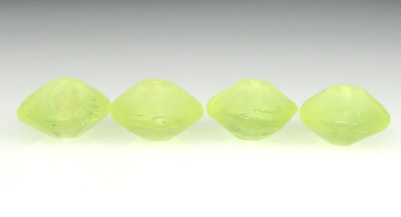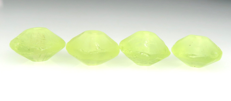 説明 | ボヘミア製。 ヴァセリンビーズと呼ばれるウランガラスの黄色のビーズです。 小さいもの4個セット。 透明感があって、独特の輝きを持った美しい玉。 |