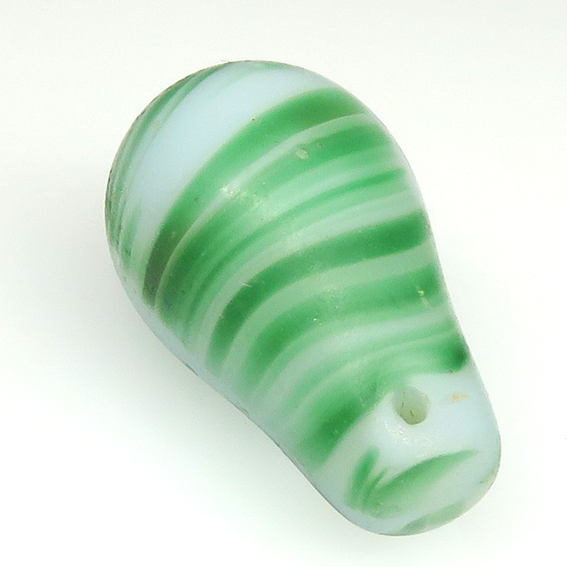 説明 | ボヘミア製。 ウェディングビーズです。 日本では、電球玉と呼ばれます。 色は、白地に渋い緑のマーブル。 |