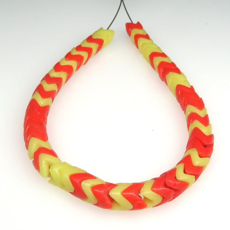 | 説明 | ボヘミア製アフリカ渡り。 スネークビーズです。黄色と朱色のミックス短連。 ビーズがうまくジョイントして一本の蛇の脊椎のように見えます。 |