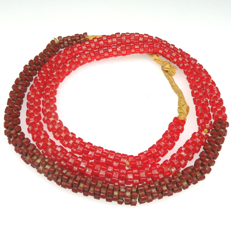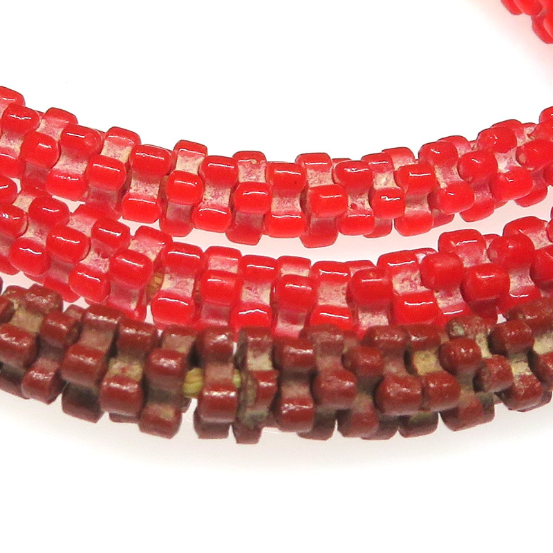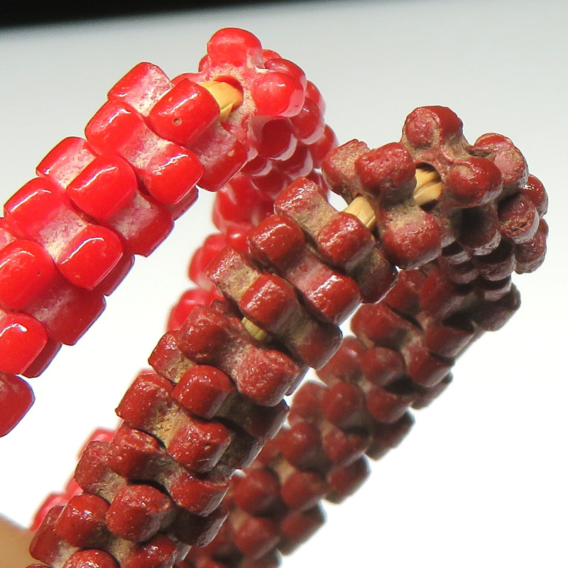 | 説明 | フラワービーズです。 4枚花びらです。 ビーズがうまくジョイントして一本の紐のように見えます。 赤と茶色です。レアな色。 |
