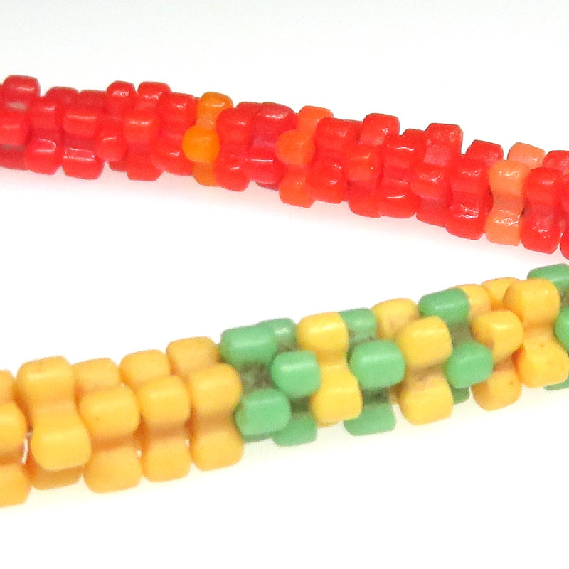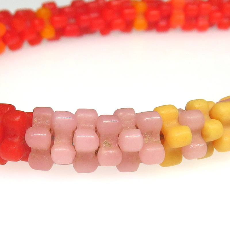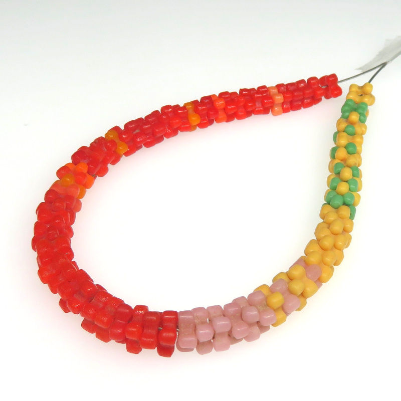 レアなピンク+赤+オレンジ+緑+山吹色の短連。 |