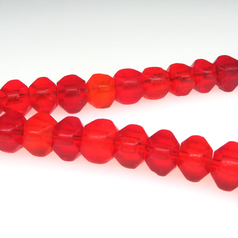 | 説明 | ボヘミア製。 オレンジ〜レッドクリアの多面体短連です。 それぞれ色やサイズ・形に個性があります。 |