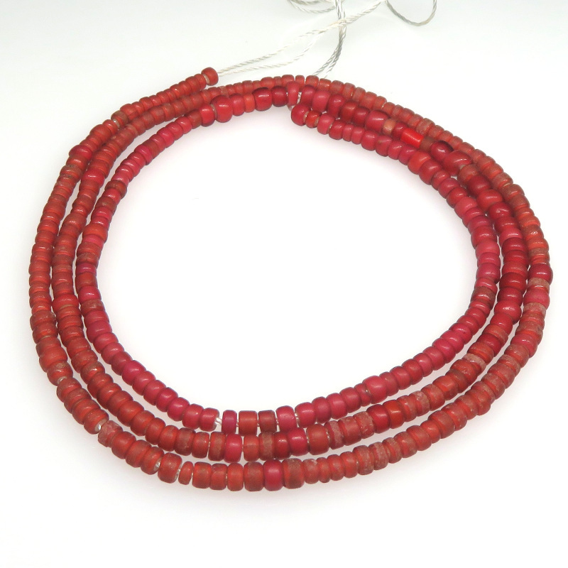 | サイズ | 直径:約2.7〜5mm。(3mm強のものが多い) 高さ:約1.5〜3.5mm。 穴径:約0.5〜1mm。 全長:約59cm。 |